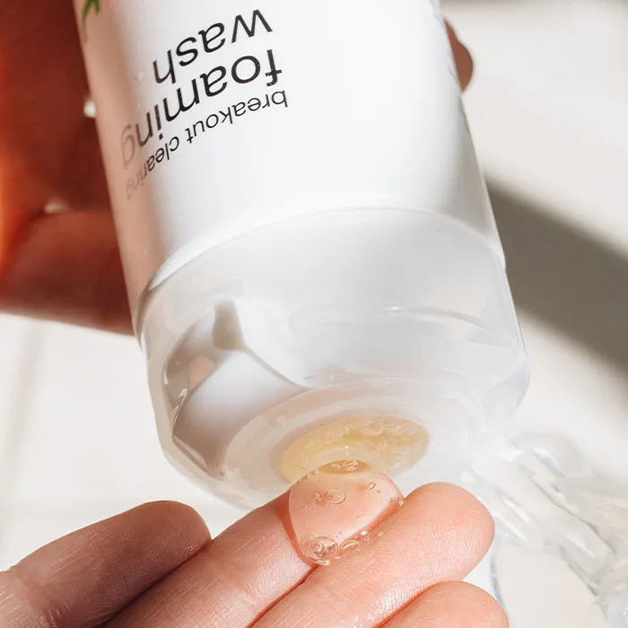 Work a pea-sized amount of breakout clearing foaming wash into a lather in wet hands. Apply to dampened face and neck, massageing in circular motions while concentrating on areas of congestion and oiliness. Avoid eye area. Rinse thoroughly with warm water.